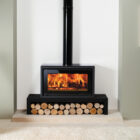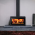 | click the images to enlarge | The Stovax Studio 1 Freestanding incorporates the impressive firebox performance of a wood burning inset fire with the welcoming presence of a stove. Available with a number of optional extras to help you create the right look for your home, the Studio 1 Freestanding wood burning stove can be hearth mounted or installed on a Studio Bench. An optional heat shield kit can be fitted to the bench in order to reduce the distance to combustible materials if required. Other styling options include a black glass top plate, gloss black enamel flue pipe, square section flue covers and flue ring covers, all of which are designed to provide an integrated and cohesive look to your new stove. |