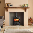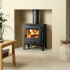 | click the images to enlarge | The Ecodesign Ready Stovax County 5 wood burning and multi-fuel stove combines timeless styling with advanced combustion systems. As a mid-size stove that is larger than the County 3, the expansive glass window offers a superb view of the flames, while powerful Airwash jets keep the glass panel clear for impressive visuals. The charming rustic exterior is designed to suit both traditional and modern interiors and responsive slide controls adjust airflow for easy heat management. Inside the Cleanburn airflow systems help to minimise emissions, and being Ecodesign Ready and DEFRA exempt as standard means it’s suitable for use in Smoke Control Areas. The County 5 is available as a dedicated wood burning stove, as well as a multi-fuel version with external riddling.