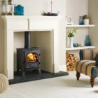| click the images to enlarge | The Stovax Stockton 5 stove offers you a squarer landscape style compared to the portrait style of the Stockton 3 or Stockton 4, and is available as either a wood burning stove or as a multi-fuel model with external riddling. The additional width allows you to load up to 13″ (330mm) in length.